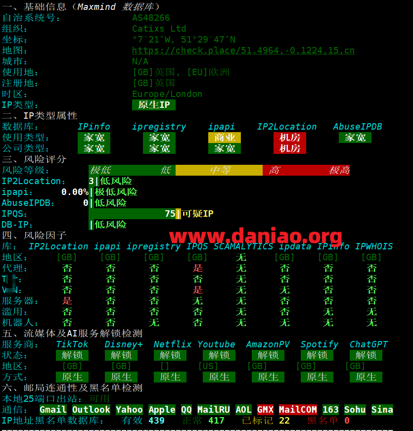 新段IP为英国原生IP,双ISP属性,解锁能力优秀~