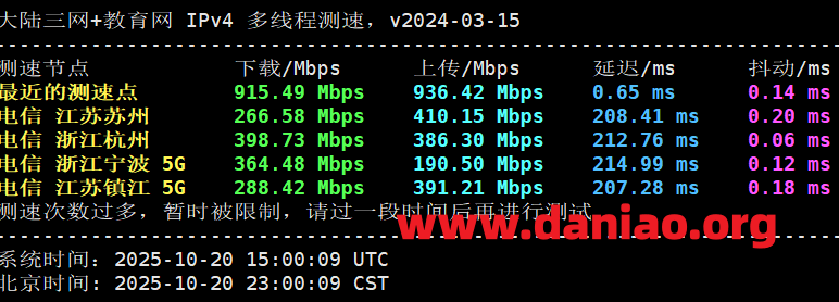 法兰克福	         802.95Mbps	 737.57Mbps	 15.70ms