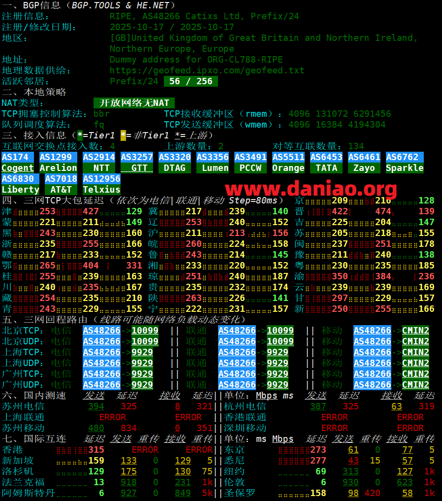 电信回程:接驳了联通CUG(AS10099+AS9929)从伦敦直连回国。