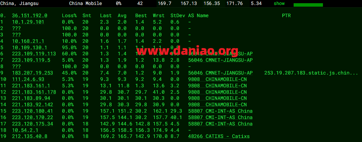 5   223.120.181.13  AS58807  [CMIN2-NET]      中国 北京   cmi.chinamobile.com