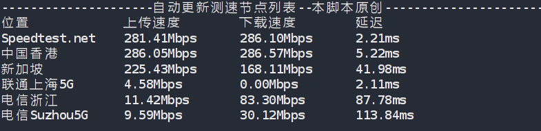 Provider        | Location (Link)           | Send Speed      | Recv Speed      | Ping