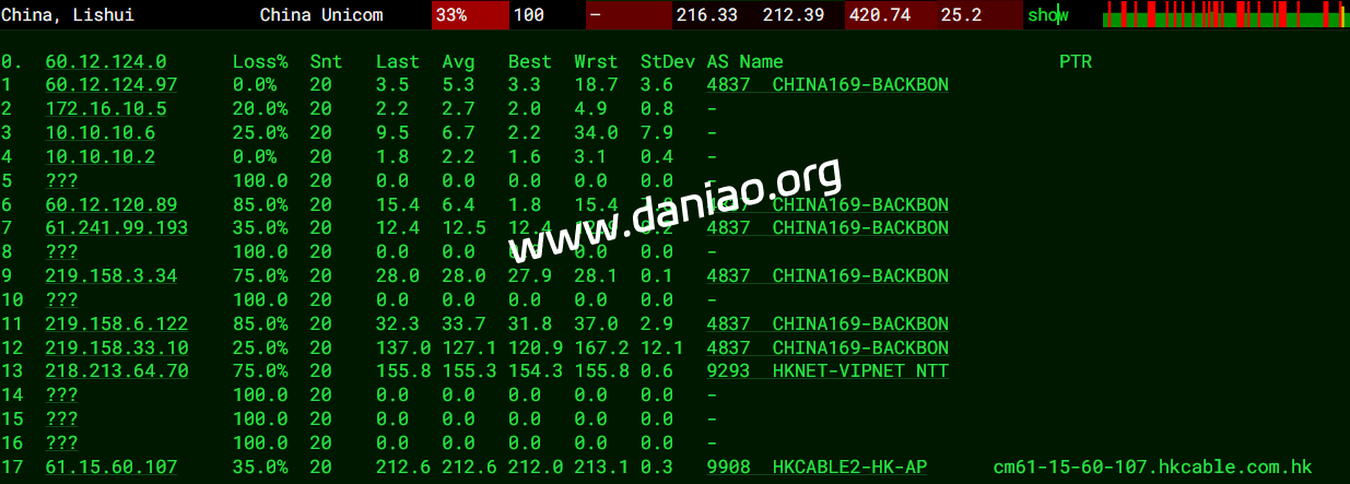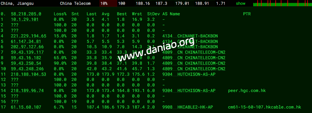 15  202.96.209.133  AS4812   [CHINANET-SH]    中国 上海   chinatelecom.cn  电信