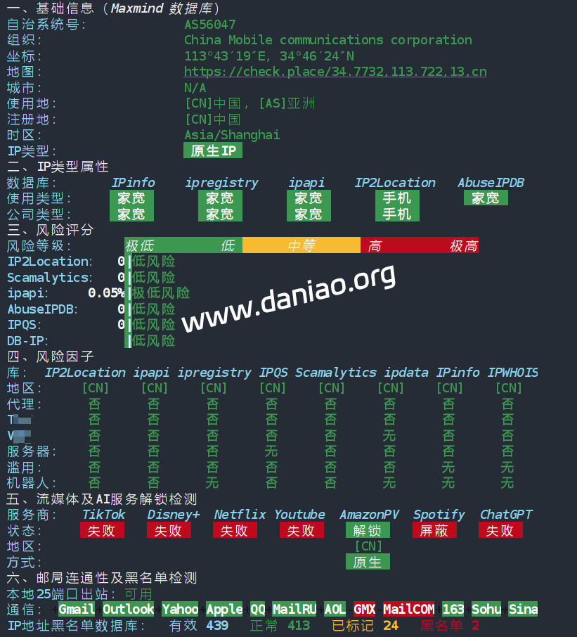 随看看下IP质量以前都看得是国外家宽,今天看看国内家宽~~