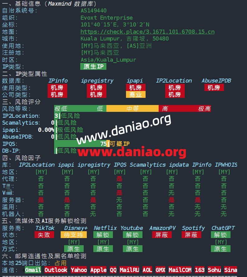 CPU是 AMD EPYC-Genoa,Geekbench和Sysbench跑分都很顶。IP为马来西亚原生IP,解锁能力不错~