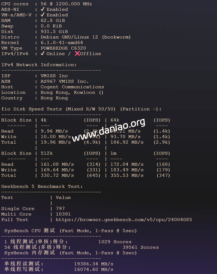 vmiss双旦期间除了有VPS优惠,还有香港物理服务器7折优惠,比如说DS.CN.HK.BGP套餐折后105加元/月,约 540 元/月。提供过了50M上行带宽和 100M下行带宽且不限制每月流量,考虑到服务器位于香港以及香港的带宽价格,这也非常不错。处理器给两颗 Intel Xeon E5-2680v4(单颗处理器为 14 核心 28 线程、主频 2.4GHz、最高 3.3GHz),不过线路为国际线路的 BGP,所以内地连接速度比较普通了。
