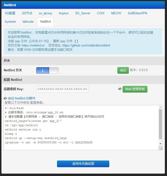 【脚本】新增 NetBird 程序,将免配置点对点专用网络和集中式访问控制系统结合在一个平台中,使您可以轻松创建安全的专用网络。