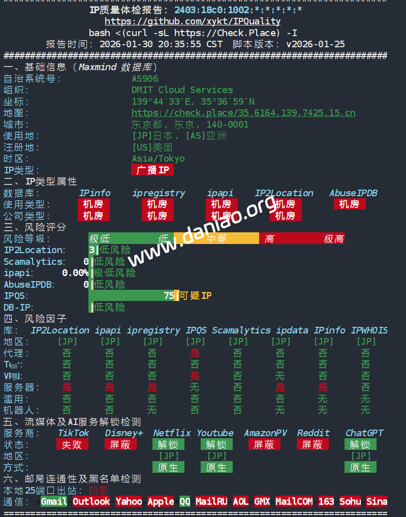 IP质量测试(ipv6):