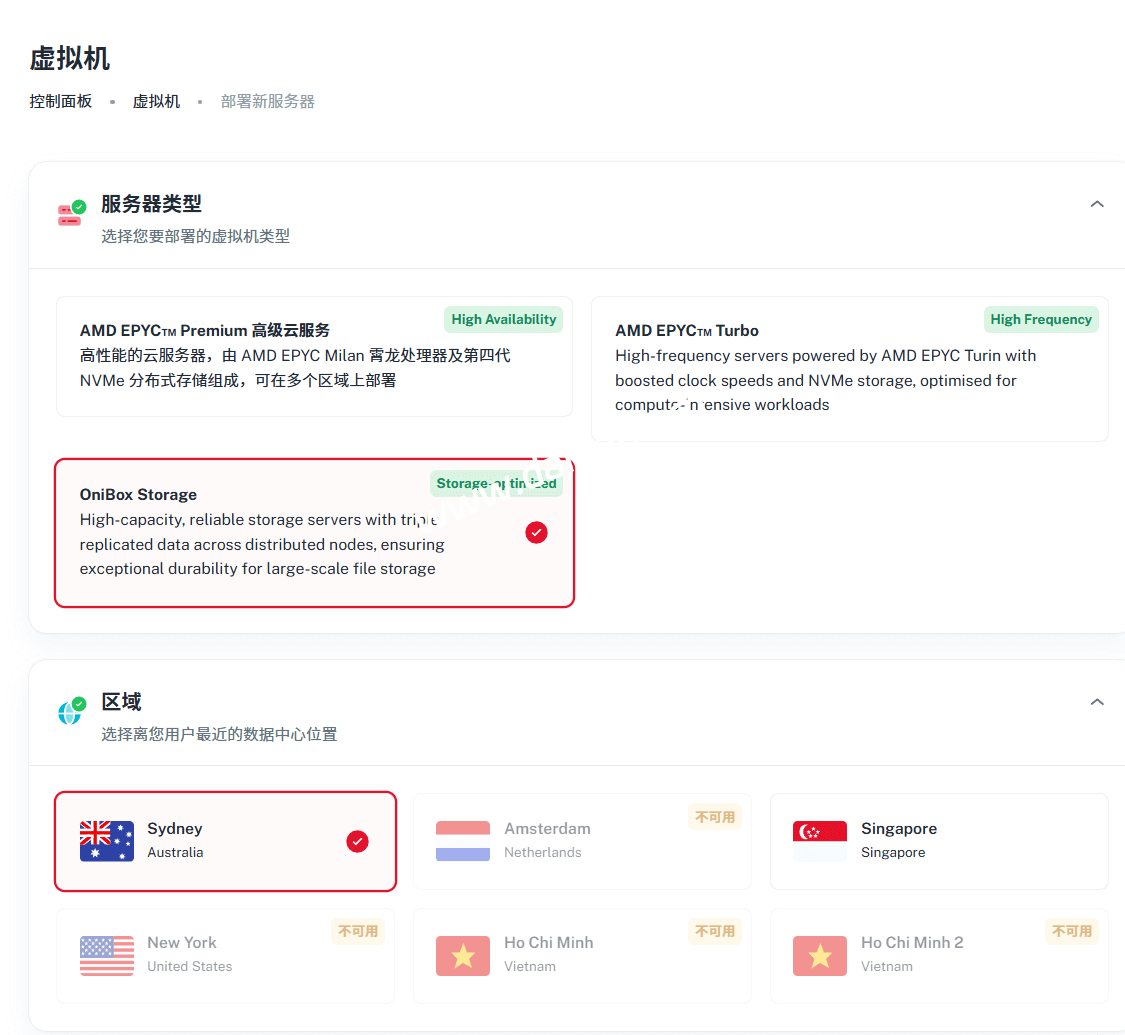 可选悉尼和新加坡机房。