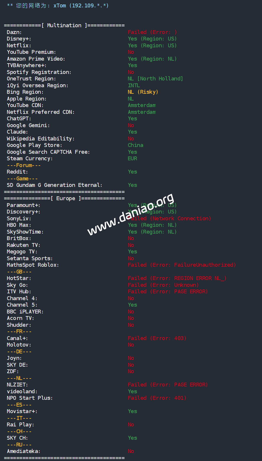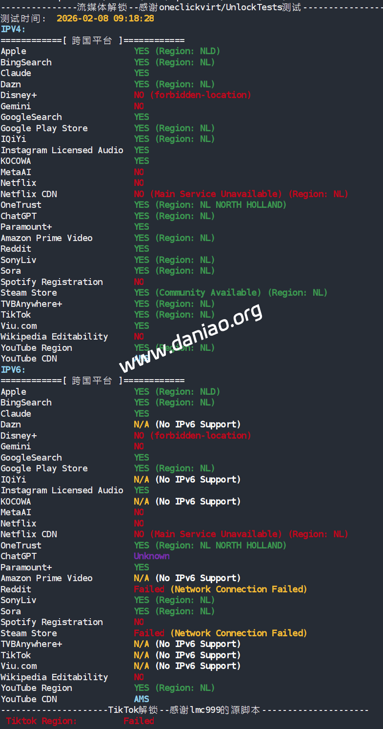 IP为荷兰原生IP,不过解锁不咋地,具体的自己看上面的数据,特地放了2张图可以对比下。