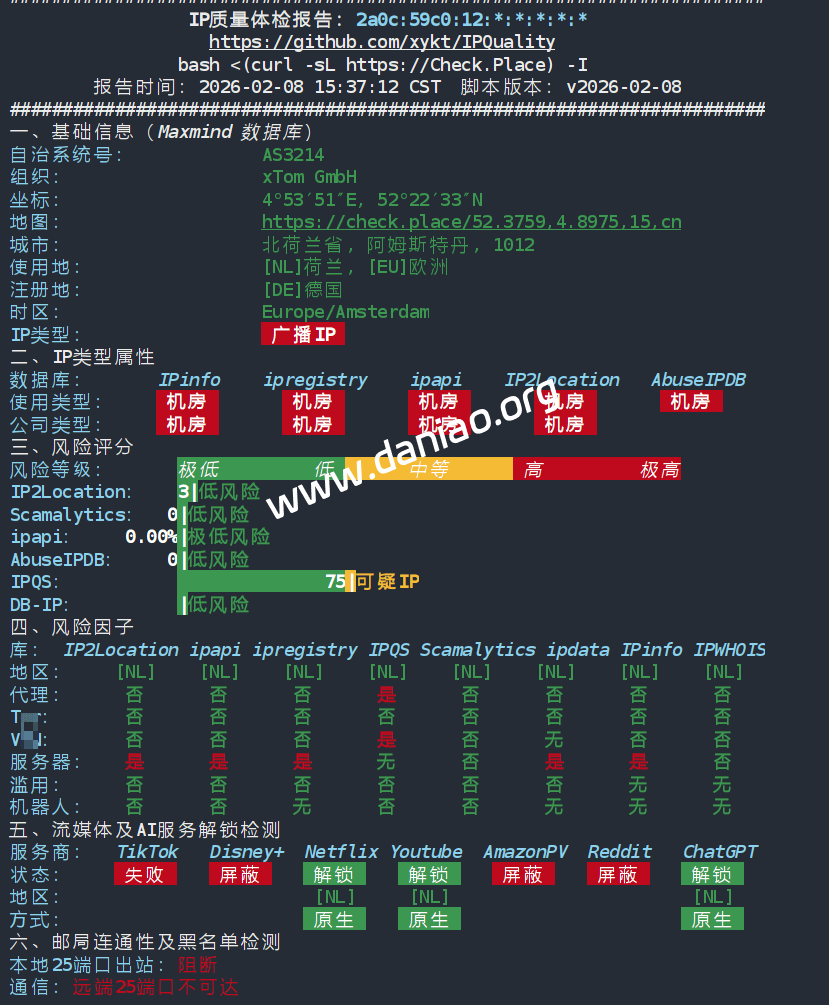 IP质量测试(ipv6):